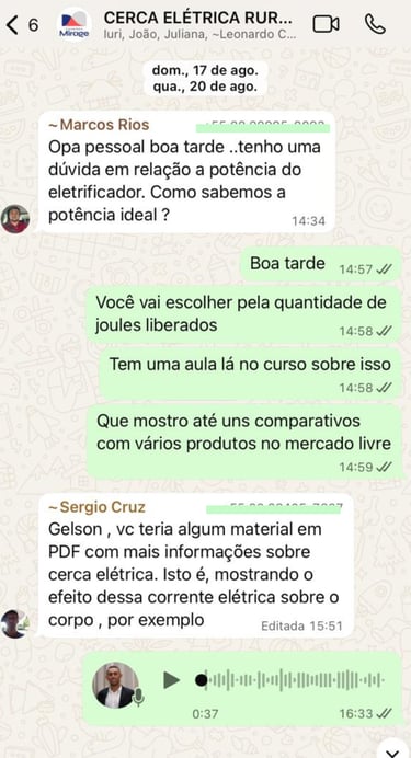 Você terá acesso ao grupo de dúvidas no whatsapp, onde terá todo suporte para seus projetos